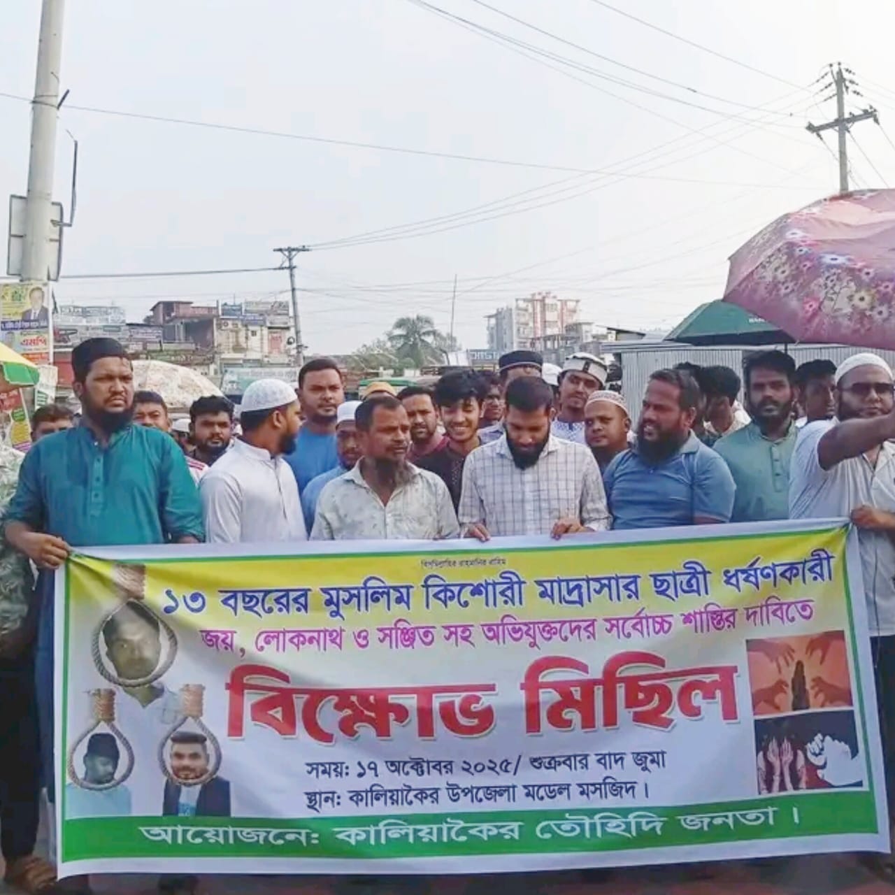 গাজীপুরে কিশোরী ধর্ষণের অভিযোগে প্রতিবাদ ও বিক্ষোভ সমাবেশ।