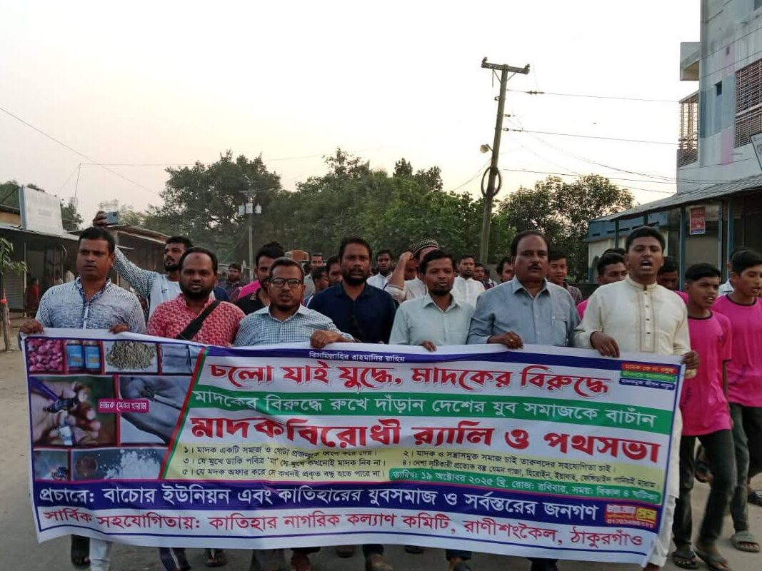 ঠাকুরগাঁওয়ে রাণীশংকৈলে মাদকের বিরুদ্ধে বিক্ষোভ মিছিল ও পথসভা অনুষ্ঠিত