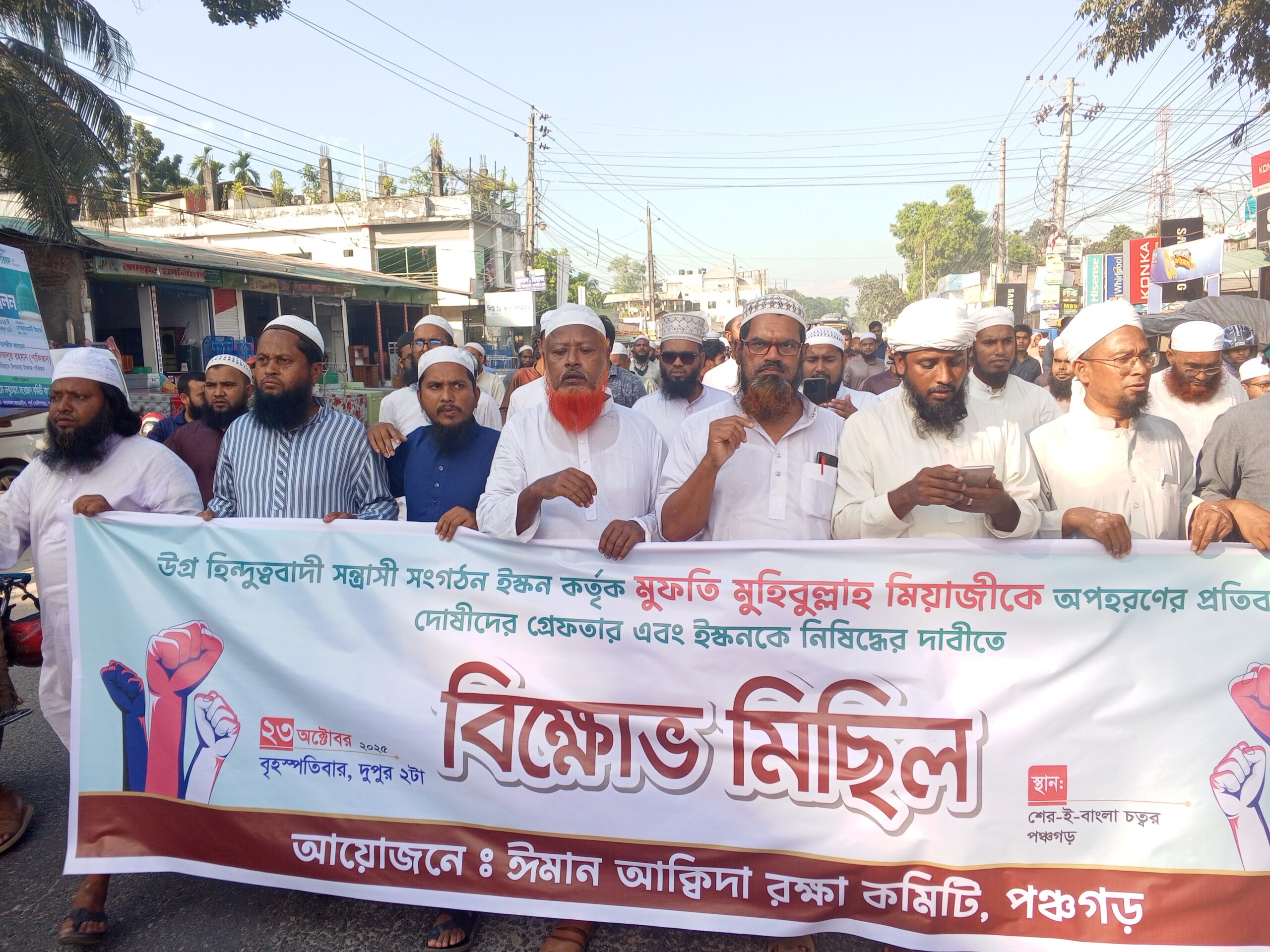 উগ্র হিন্দুবাদী সংগঠন ইসকন কর্তৃক টঙ্গীর ইমাম মুফতি মুহিব্বুল্লাহ মিয়াজীকে অপহরণের প্রতিবাদে এবং ঘটনায় জড়িত দোষীদের গ্রেফতার ও ইসকনকে নিষিদ্ধ ঘোষণার দাবিতে পঞ্চগড়ে বিক্ষোভ মিছিল অনুষ্ঠিত হয়েছে।