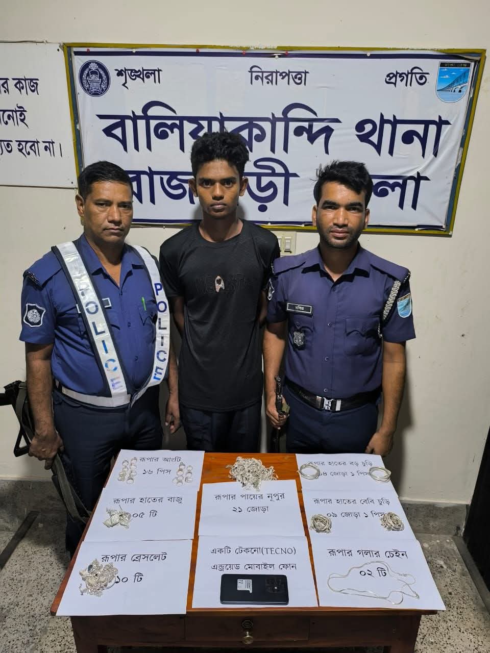 রাজবাড়ীর বালিয়াকান্দী স্বর্ণের দোকানে চুরি ১০৩ ভরি রূপা ও মোবাইলসহ পেশাদার চোর গ্রেফতার